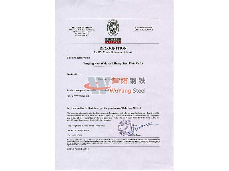 舞陽鋼鐵BV(法國) 船舶船級社認證證書